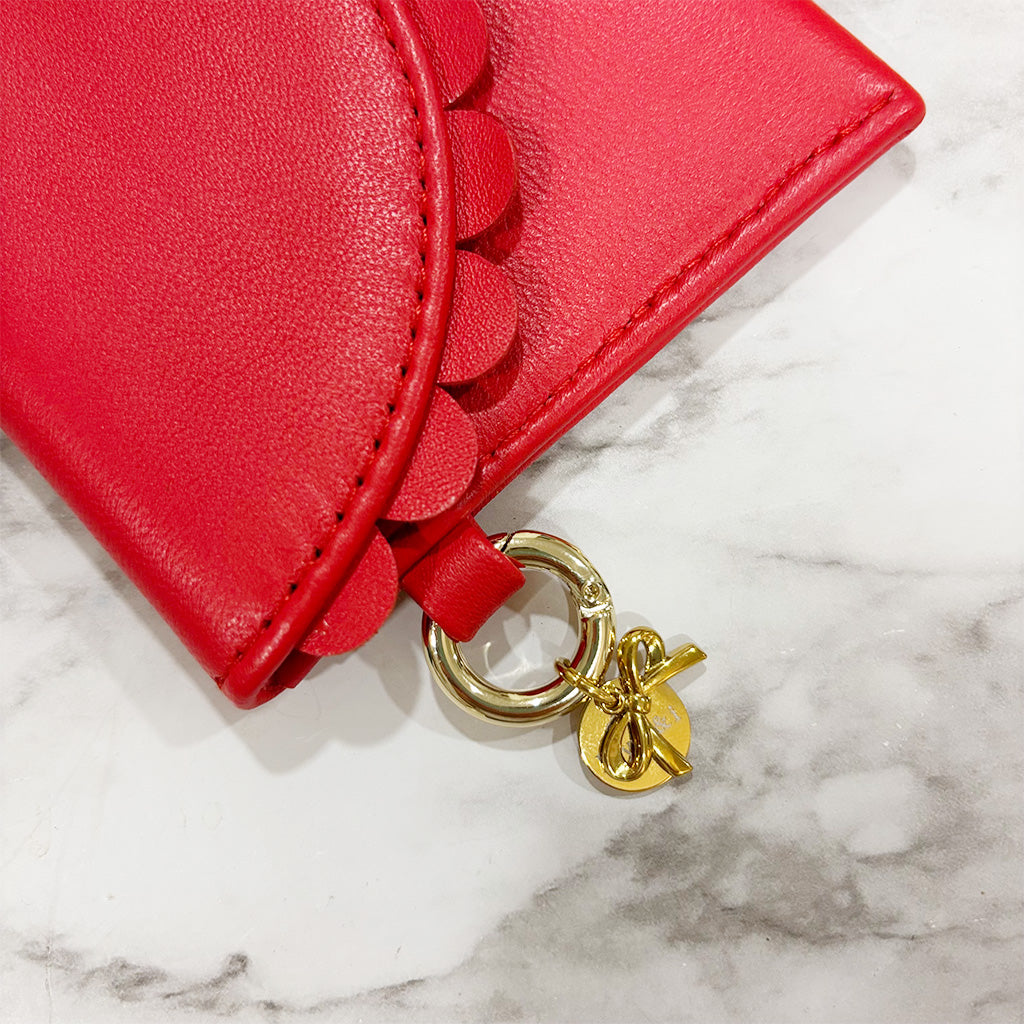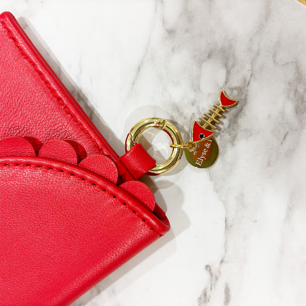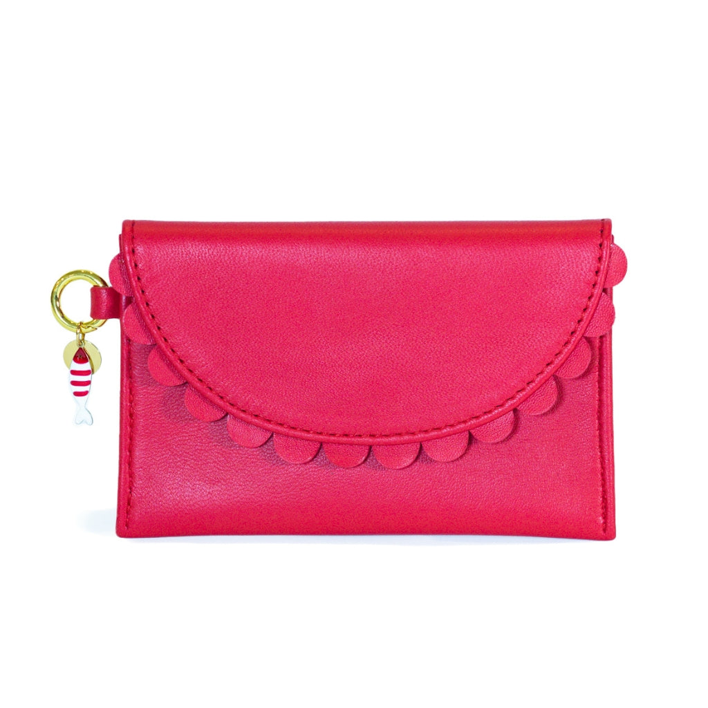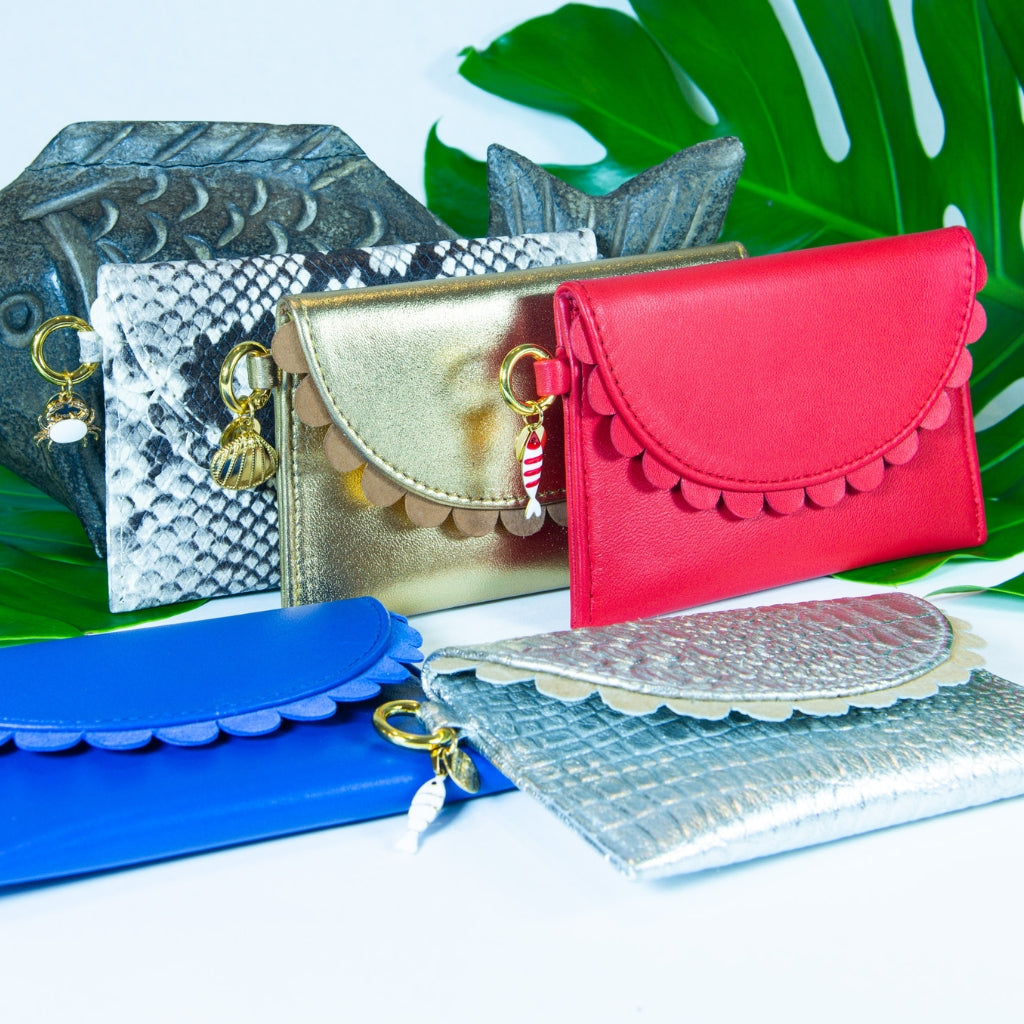 The Bella purse is a playful and practical addition to your handbag. With it's scallop edge detail, secure popper closure and back pocket, there's plenty to love about this purse. It now comes with an adorable bejewelled charm with fish, shells or crabs as well as our brand coin tag. Please specify charm choice from menu choices of you can request a different charm if it's not listed.