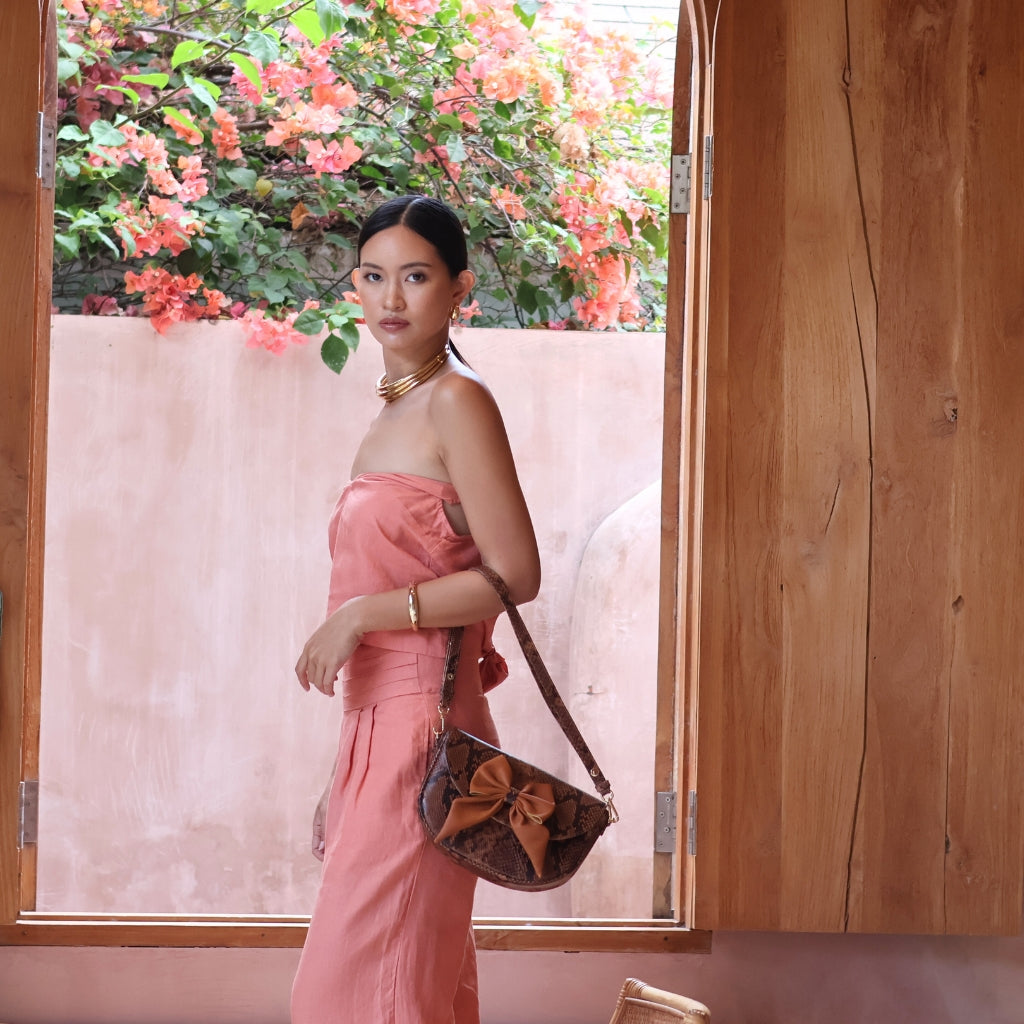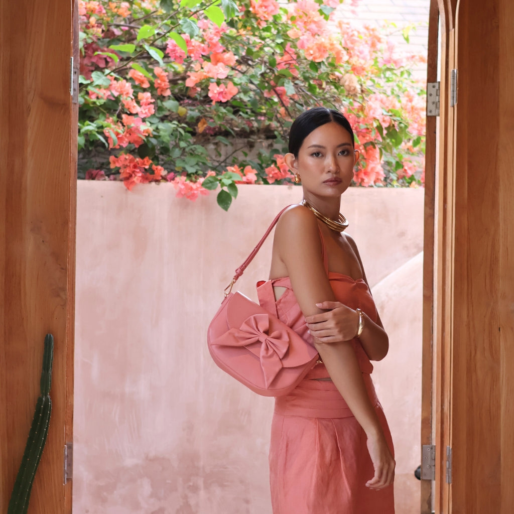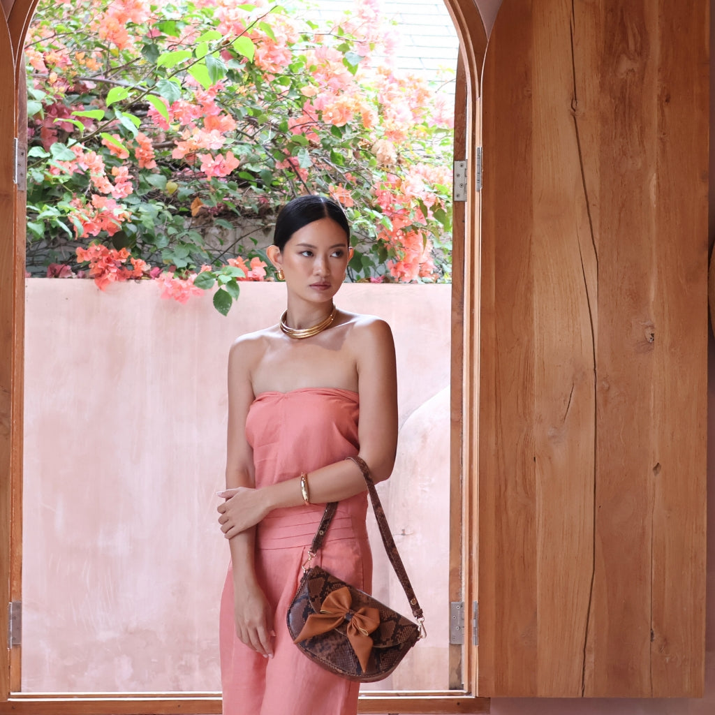 It’s the little touches that leave the biggest impression. Scalloped trims, sculptural knots, and luxurious hardware meet hidden compartments, adjustable straps, and coordinating accessories. Thoughtful details — both aesthetic and practical — are what set Elyse & i apart.