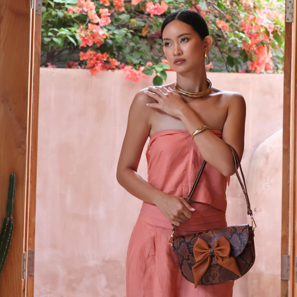 Meet the Dex Bow — the accessory that's about to top your wish list. Effortlessly versatile, it’s designed to take you from day to night with ease. This crescent-shaped beauty is spacious, handcrafted, and finished with our signature removable leather bow clip.