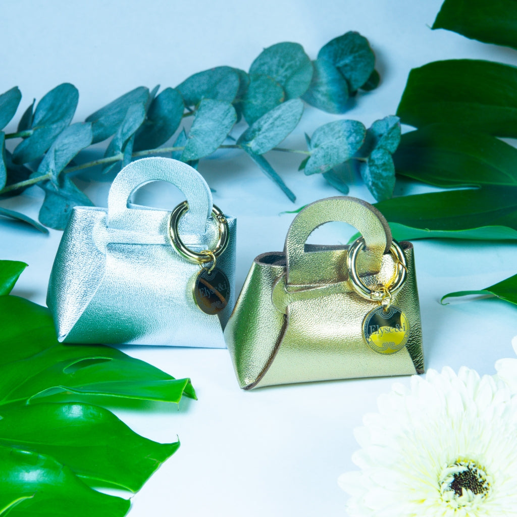 Add a touch of personality to your handbag with our mini leather bag charm - available in silver, gold or mono snakeprint leather.