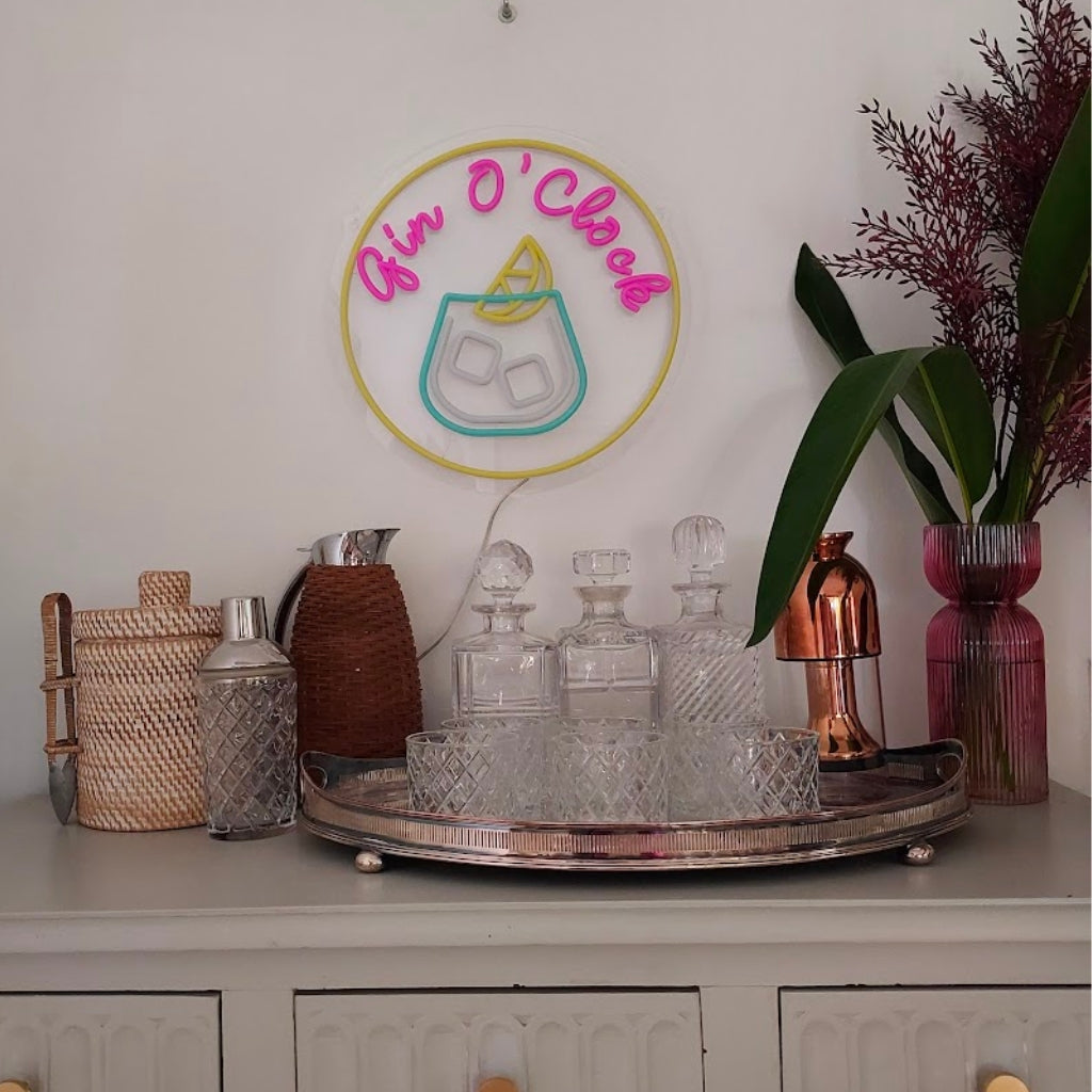 PRE-ORDER BESPOKE ITEM. What hour is happy hour? Every hour! The Gin O'Clock sign is a bit of whimsical fun - hang by your bar and delight your guests.
