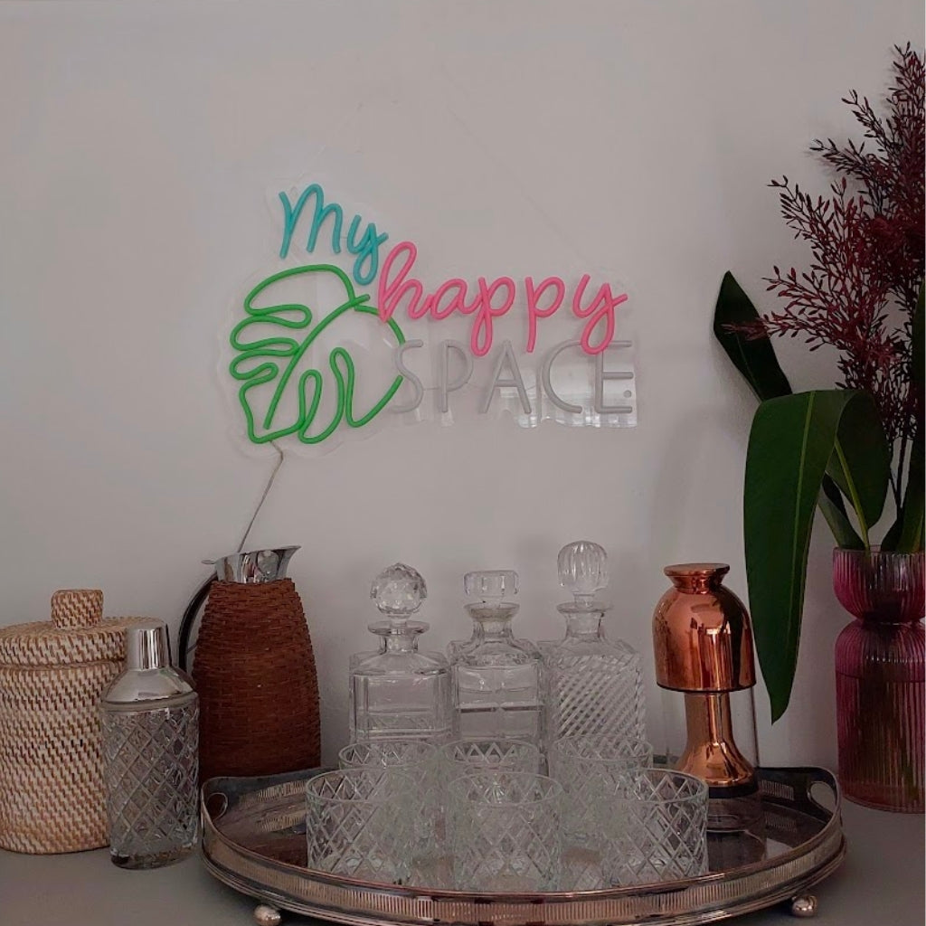 Where's your happy space? Your home, your yoga mat, your reading nook? This sign will brighten just about anywhere you hang it.