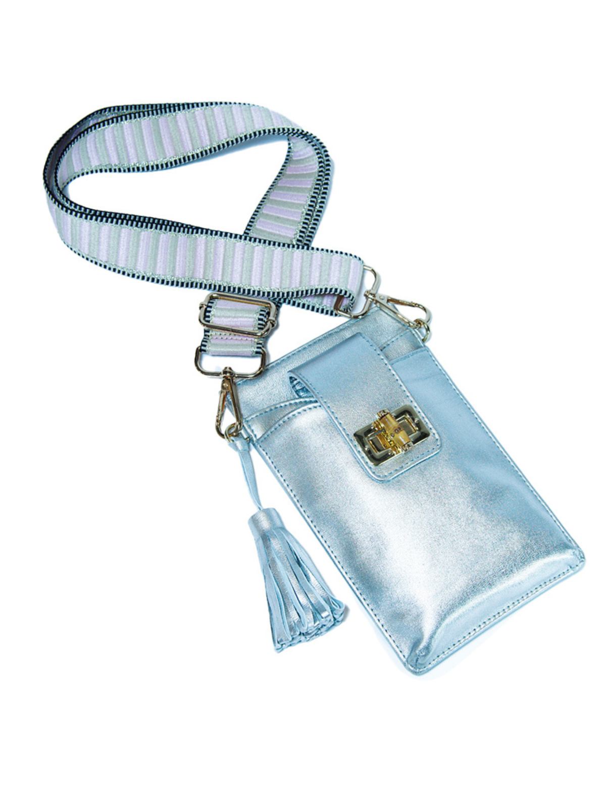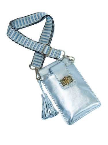 Shimmer and shine with the Luna in metallic silver lambskin. A compact crossbody with a playful tassel and double-pocket design, it brings just the right amount of glamour from day to night.