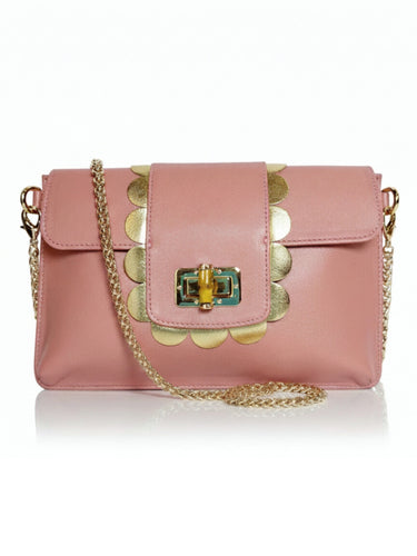 A luxe twist on a favourite: the Finn Scallop in rose pink lambskin with gold trim. Scalloped edges meet metallic highlights for an elegant take on playful design.