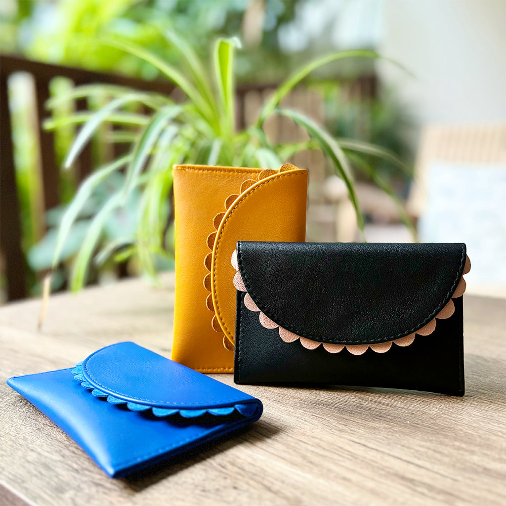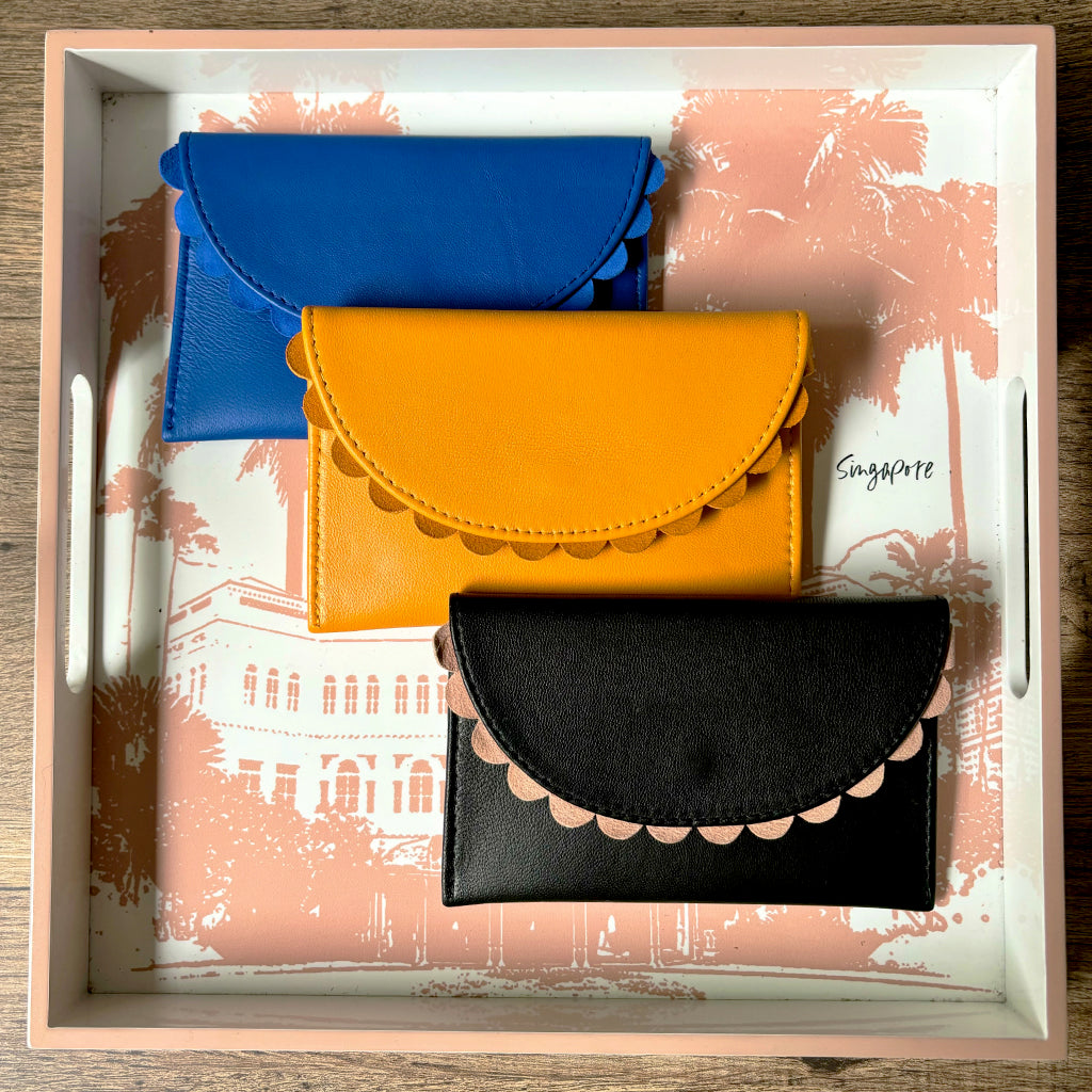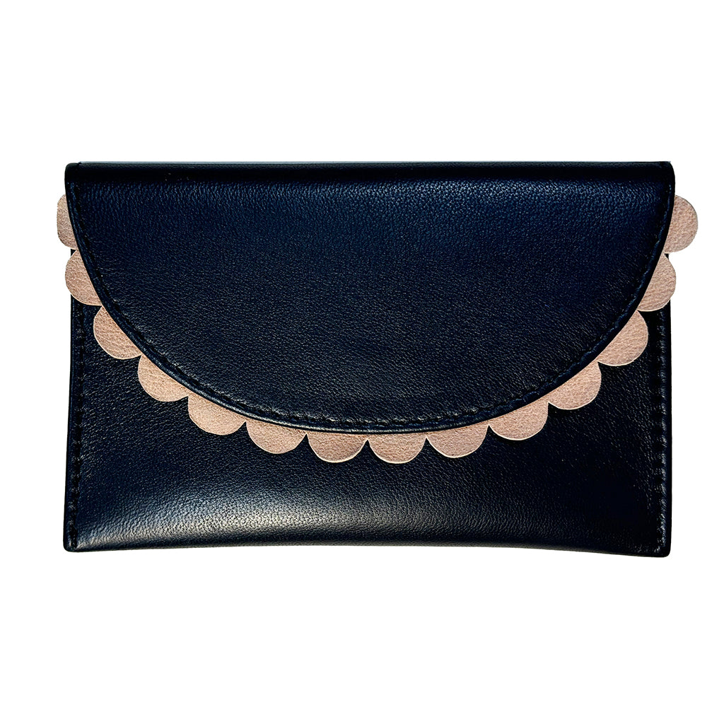 The Bella purse is a playful and practical addition to your handbag. With it's scallop edge detail, secure popper closure and back pocket, there's plenty to love about this purse. It comes in a thick velvet storage pouch so makes a thoughtful gift too.