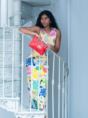 Playful and bold, the Finn Scallop in watermelon red lambskin is a vibrant twist on a timeless silhouette. Scallop edges and a bamboo turn-lock add charm to this versatile clutch-to-crossbody design.