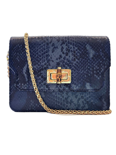 Otis Bamboo Lock - Navy Python Print (Calf)
