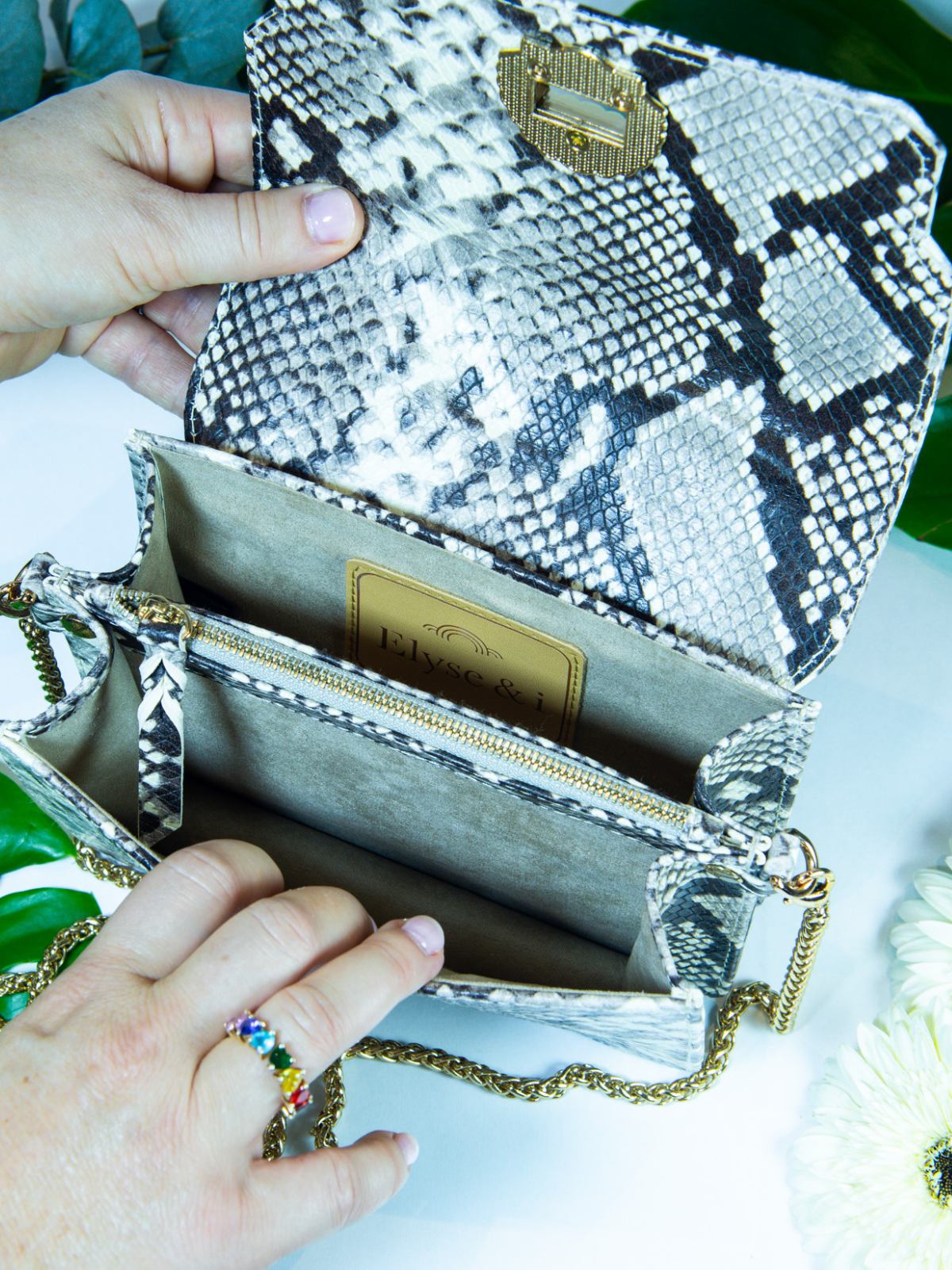It’s the little touches that leave the biggest impression. Scalloped trims, sculptural knots, and luxurious hardware meet hidden compartments, adjustable straps, and coordinating accessories. Thoughtful details — both aesthetic and practical — are what set Elyse & i apart.