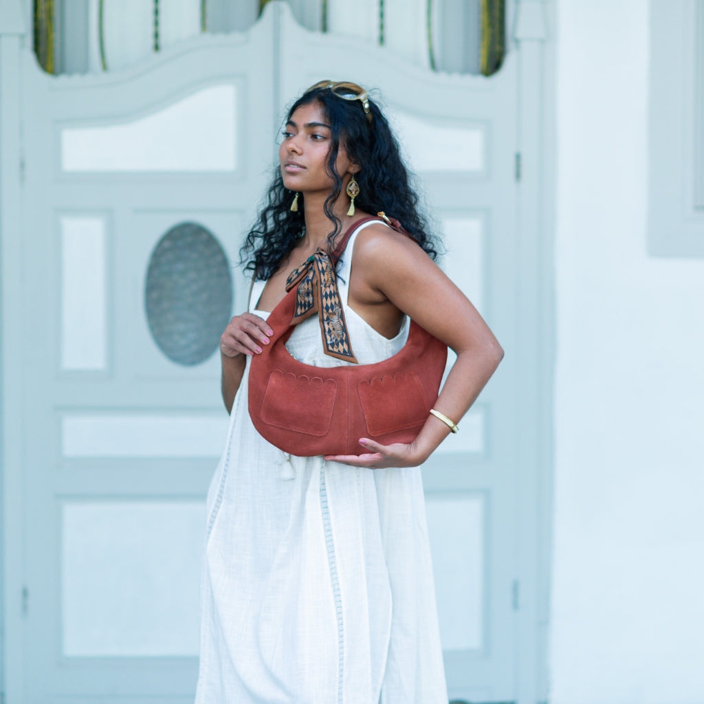 Fleur has designed two versatile scarves for Elyse & i, thoughtfully crafted to complement several of our bags. Styles like the Theo Knot, Dawn Scallop, and Martha Hobo feature dedicated leather loops for easy styling. Alternatively, wear the scarf in your hair, as a chic necktie, or wrapped around your wrist for a touch of effortless elegance.