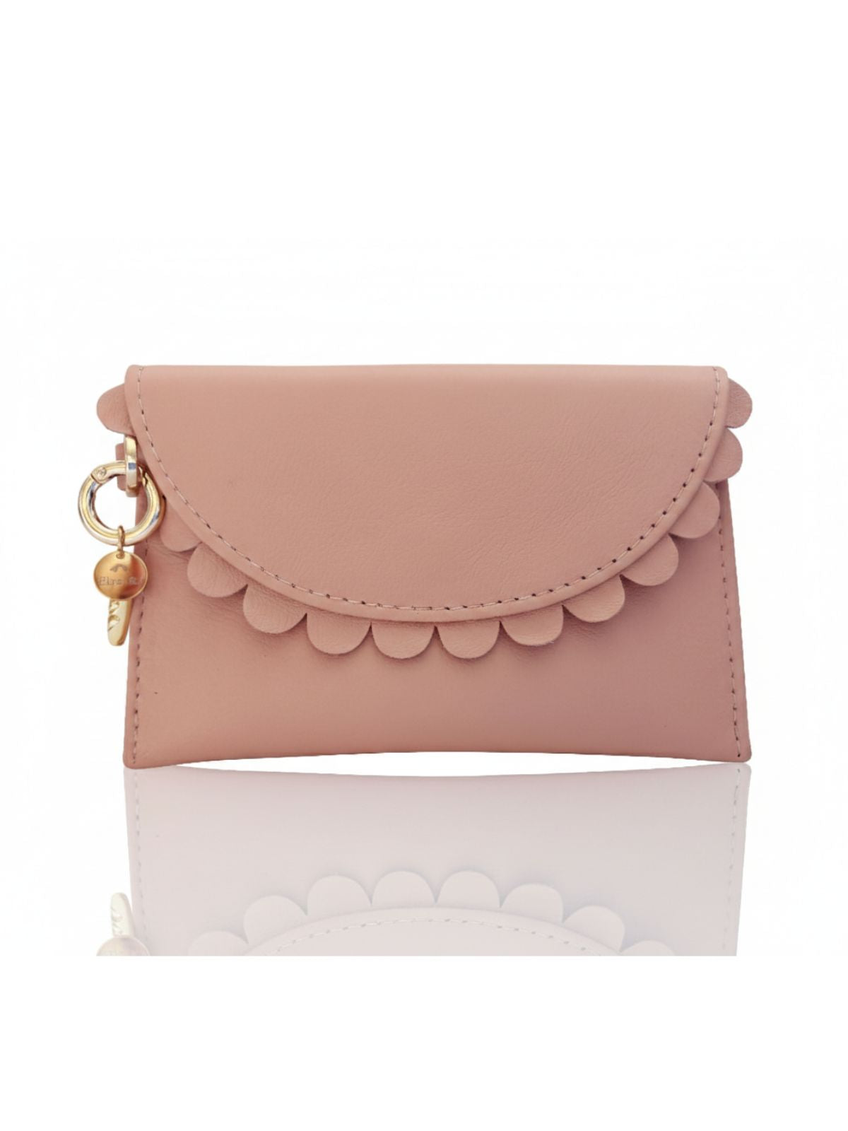 The Bella Blush Scallop Purse is a small leather purse crafted from soft blush pink lambskin, designed to bring both function and personality to your everyday handbag.