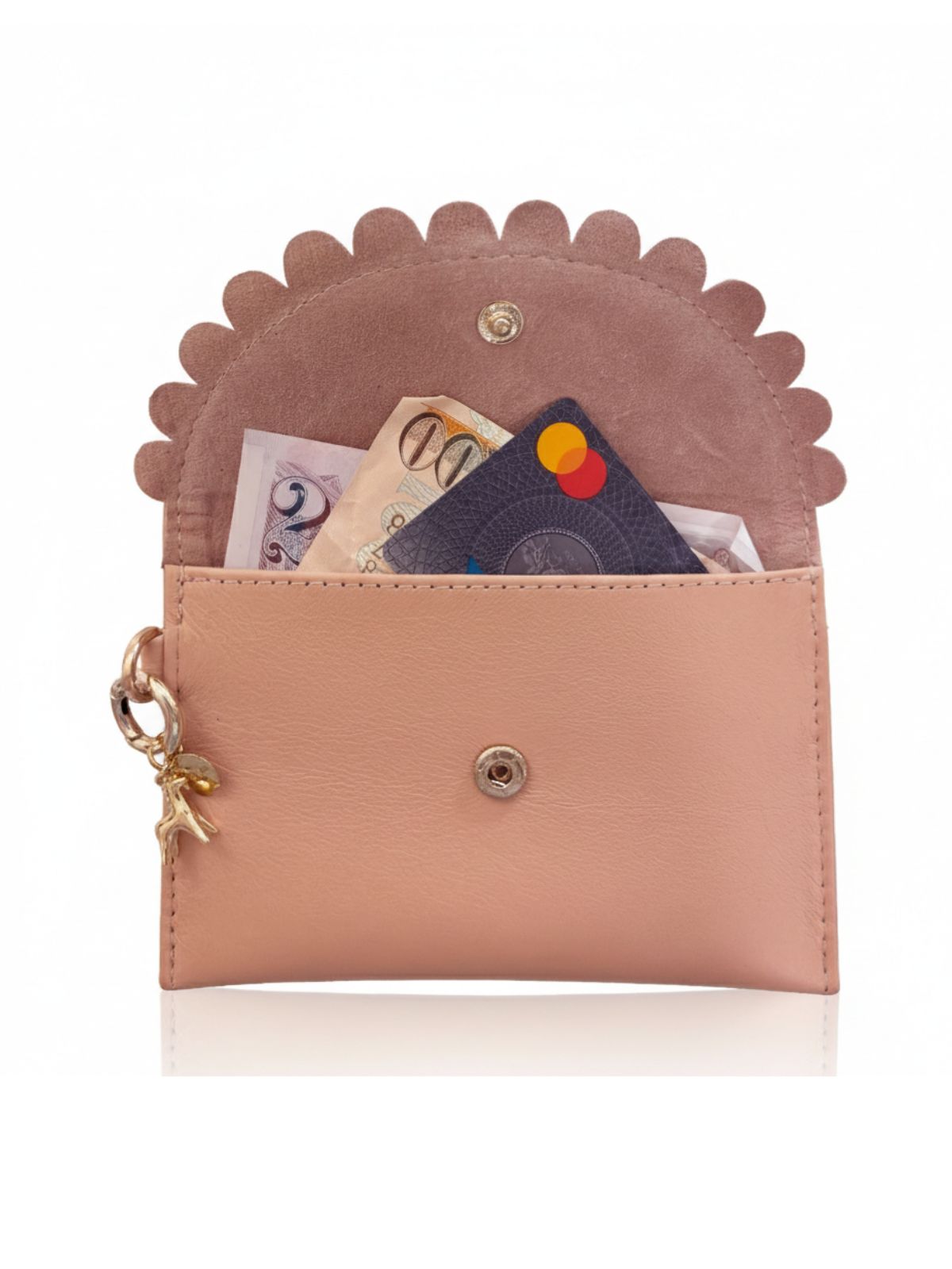 Featuring Bella’s signature scallop-edged flap, secure popper closure, slim expandable silhouette and practical back pocket, this designer coin purse keeps essentials neatly organised while taking up minimal space.