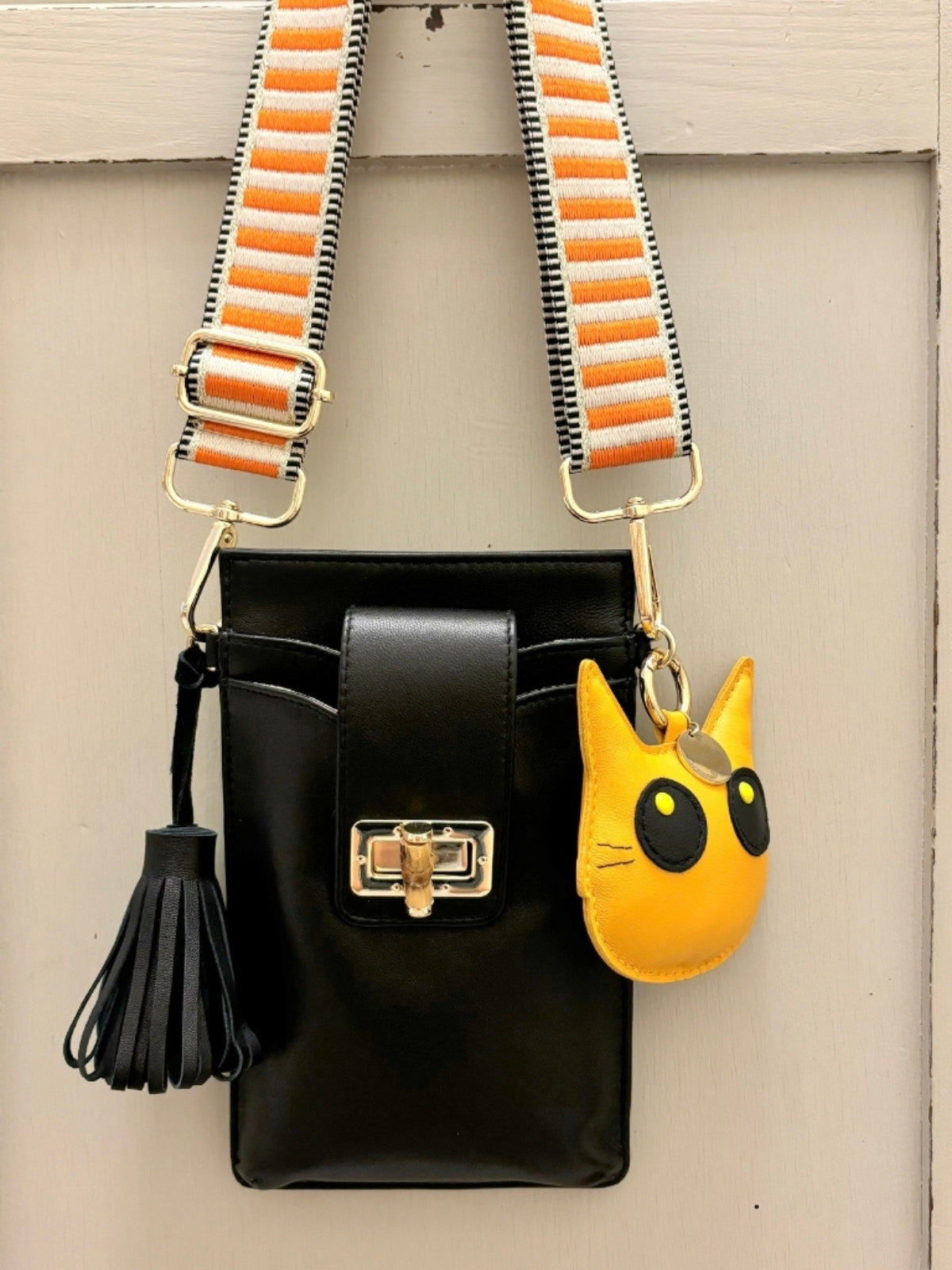 Expertly handcrafted in orange, gold and black leather, each cutie cat is made using leftover leathers from our bag production — helping to reduce waste — and finished with the sweetest expressions.