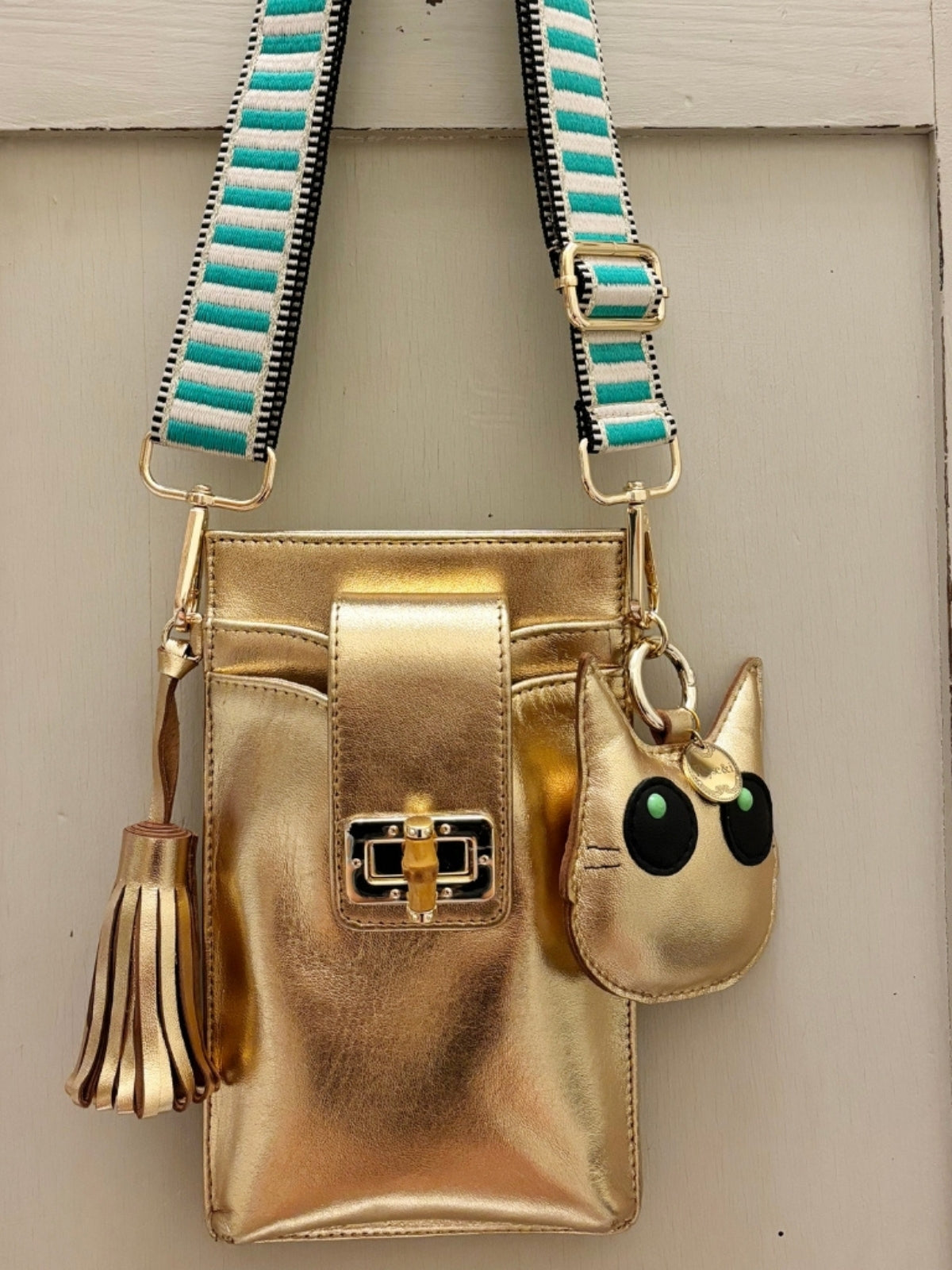 For all the paw-rents and cat lovers out there, this playful cat charm can be used as a bag charm or keyring. It features a gold-toned push-to-open jump ring, making it easy to attach to your bag or keys.